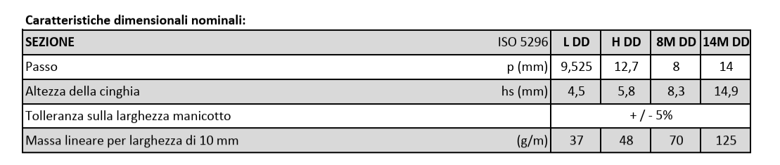 - Materiali: neoprene o PU con cavi in vetro/aramide/acciaio.